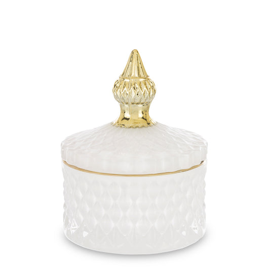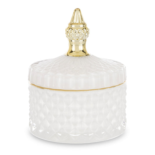 Pojemnik Dekoracyjny Szklany z Przykryciem Biały Mleczny 8cm